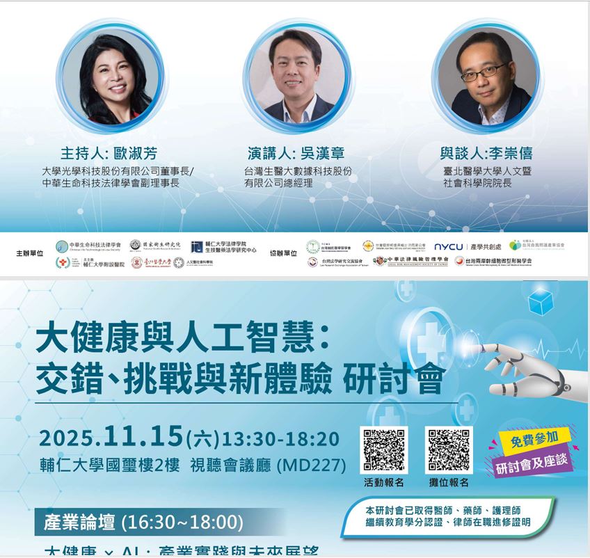 【最新活動】大健康與人工智慧:交錯、挑戰與新體驗研討會